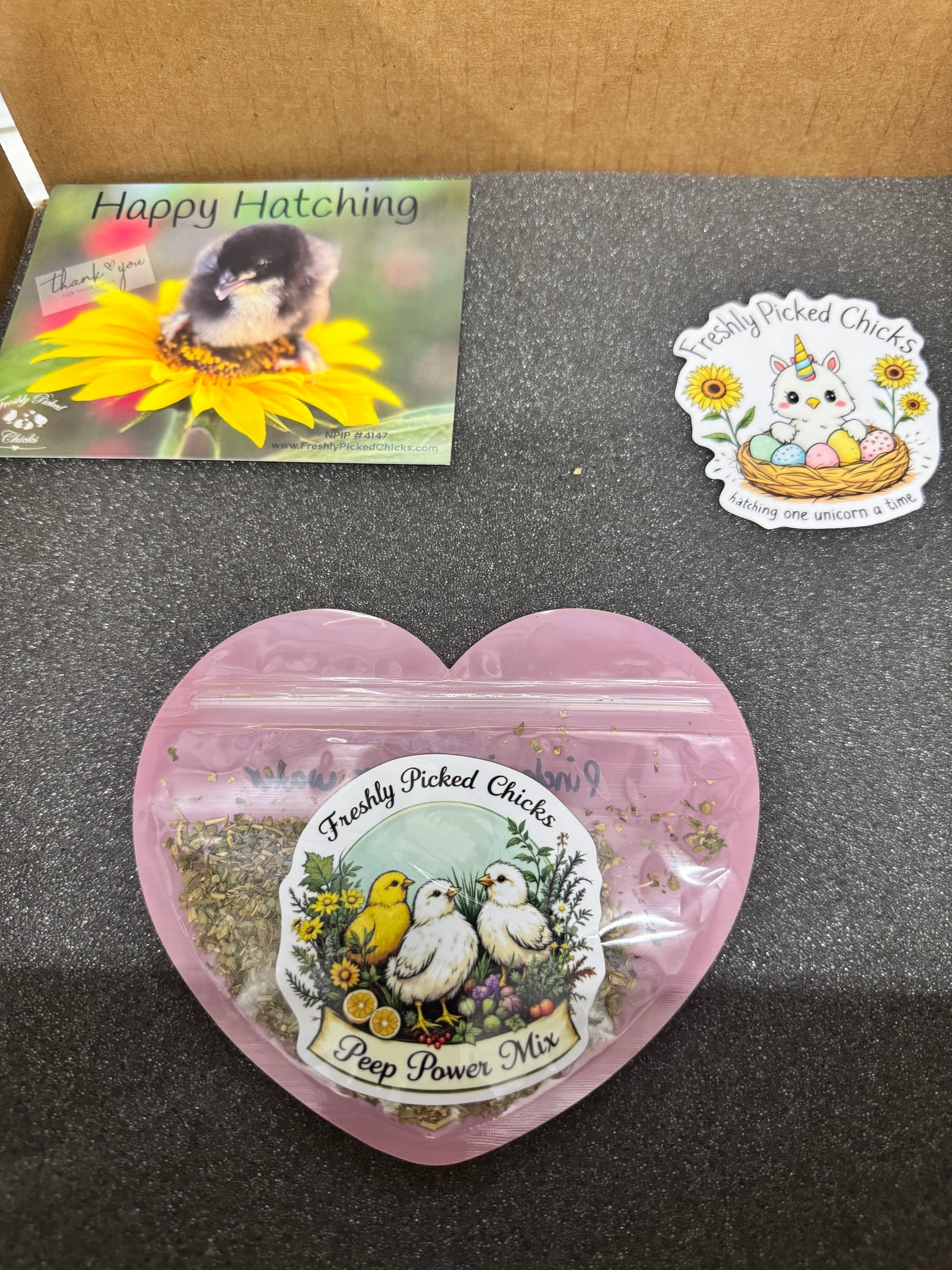 Give your chicks a strong start with Peep Power Mix, an herbal blend designed to help them learn to find their water while building their immune system naturally. The herbs float on the surface of the waterer, attracting curious peeps to peck and sip, training them to drink while also giving them health-boosting benefits.
